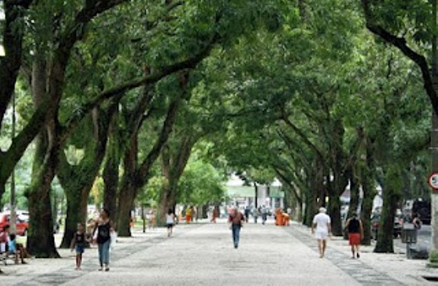 Ester se encantou com o chamado Tunel Verde, avenidas ladeadas de mangueiras gigantes que se fecham no alto formando um incrivel tunel natural. As mangas caem por toda parte e ela se divertiu ao descobrir que existe até um seguro contra acidentes com mangas caindo, rs